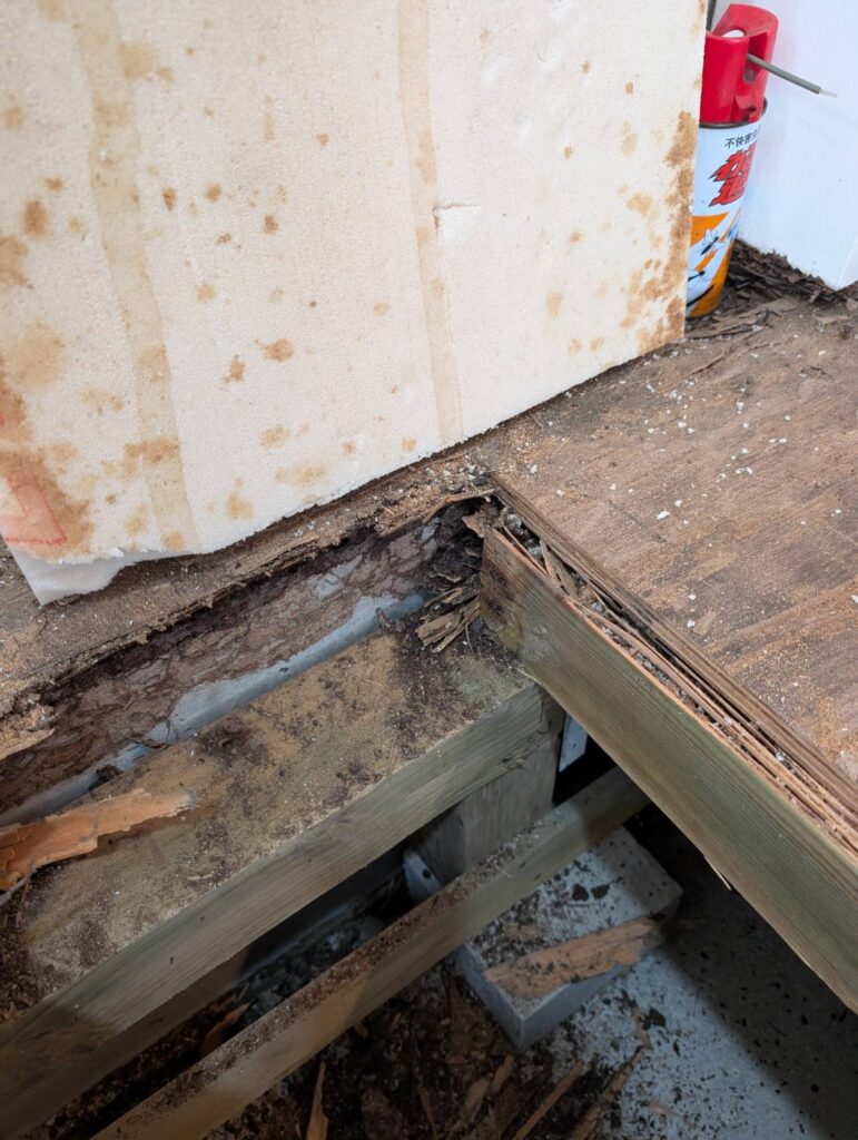 このシロアリが出た場所は、浴室の出入り口です。