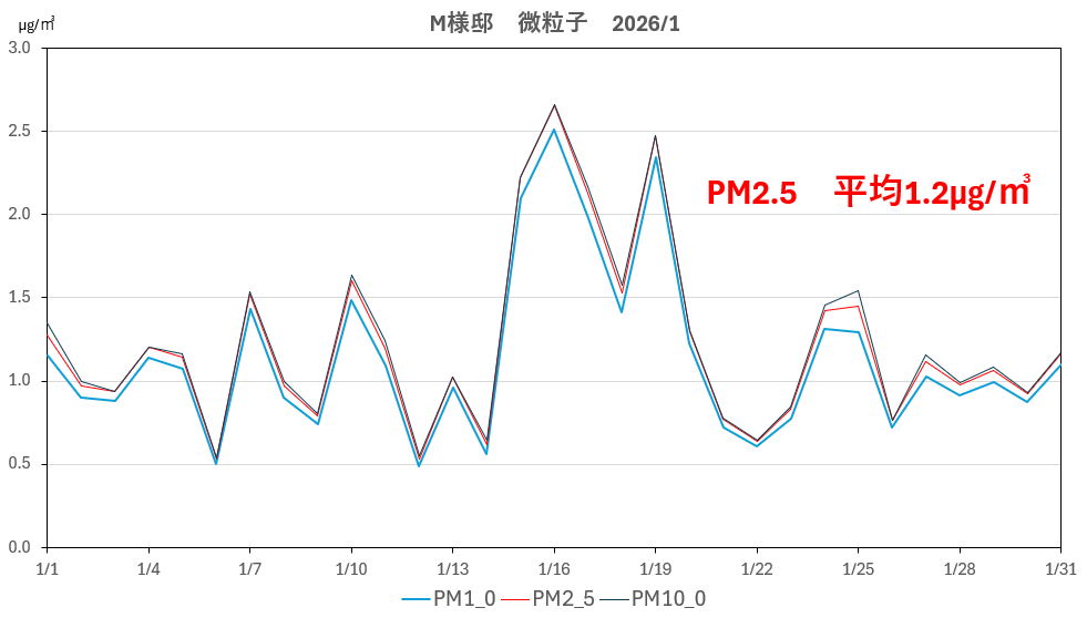 - わが社の住宅の平均値:1~2μg/㎥ 前後